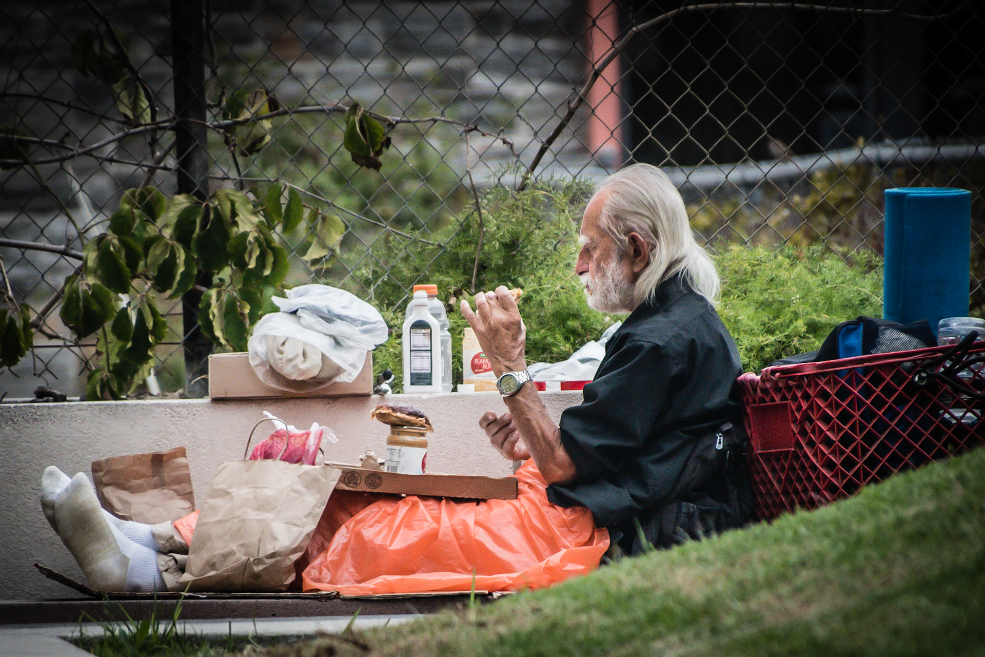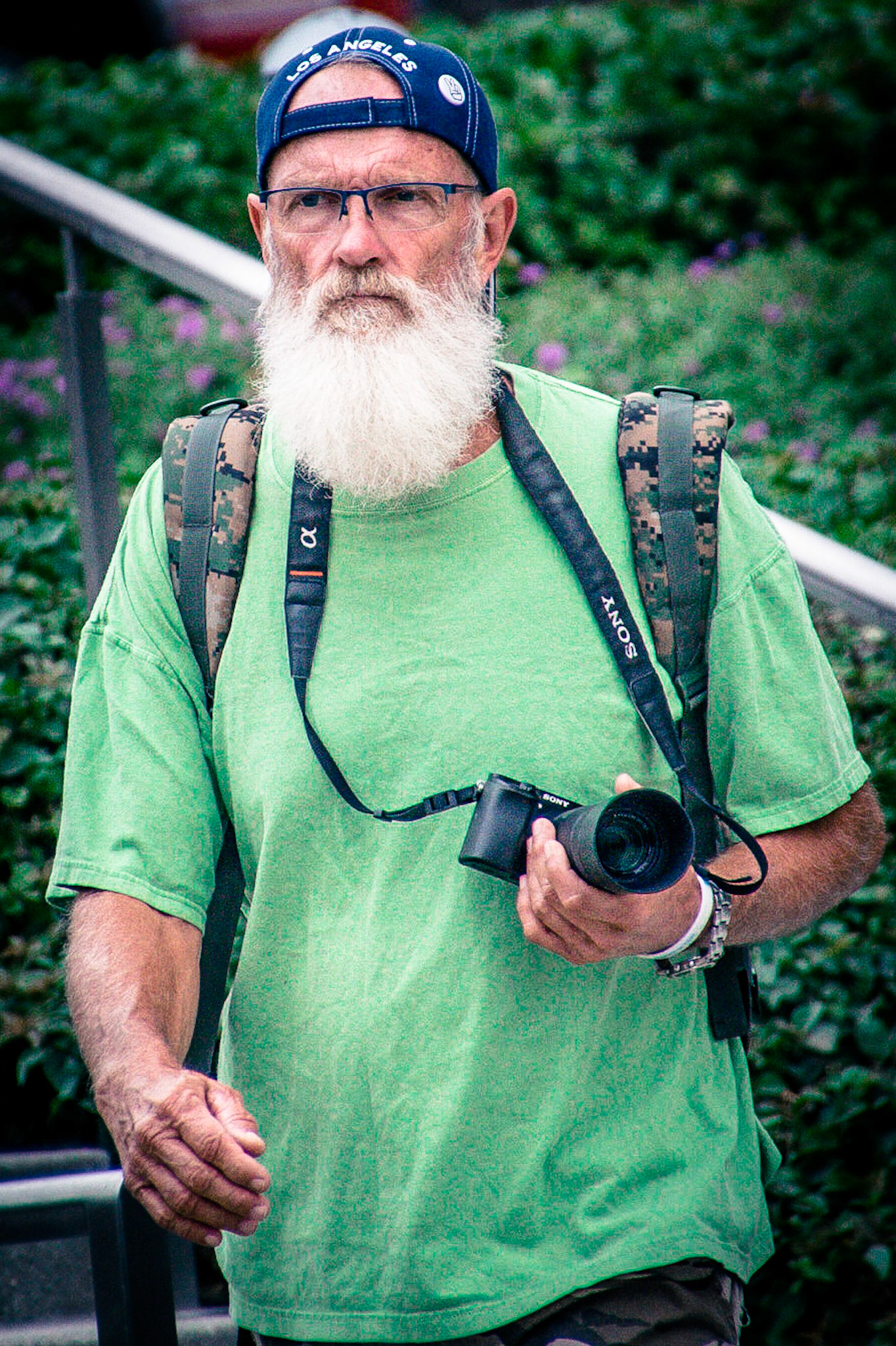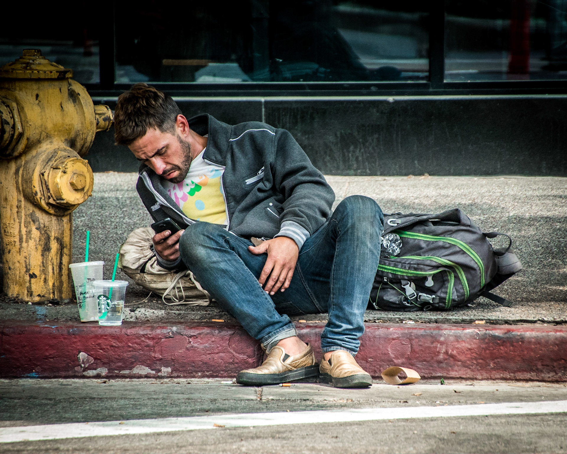 People in downtown Los Angeles on a Saturday afternoon in September.